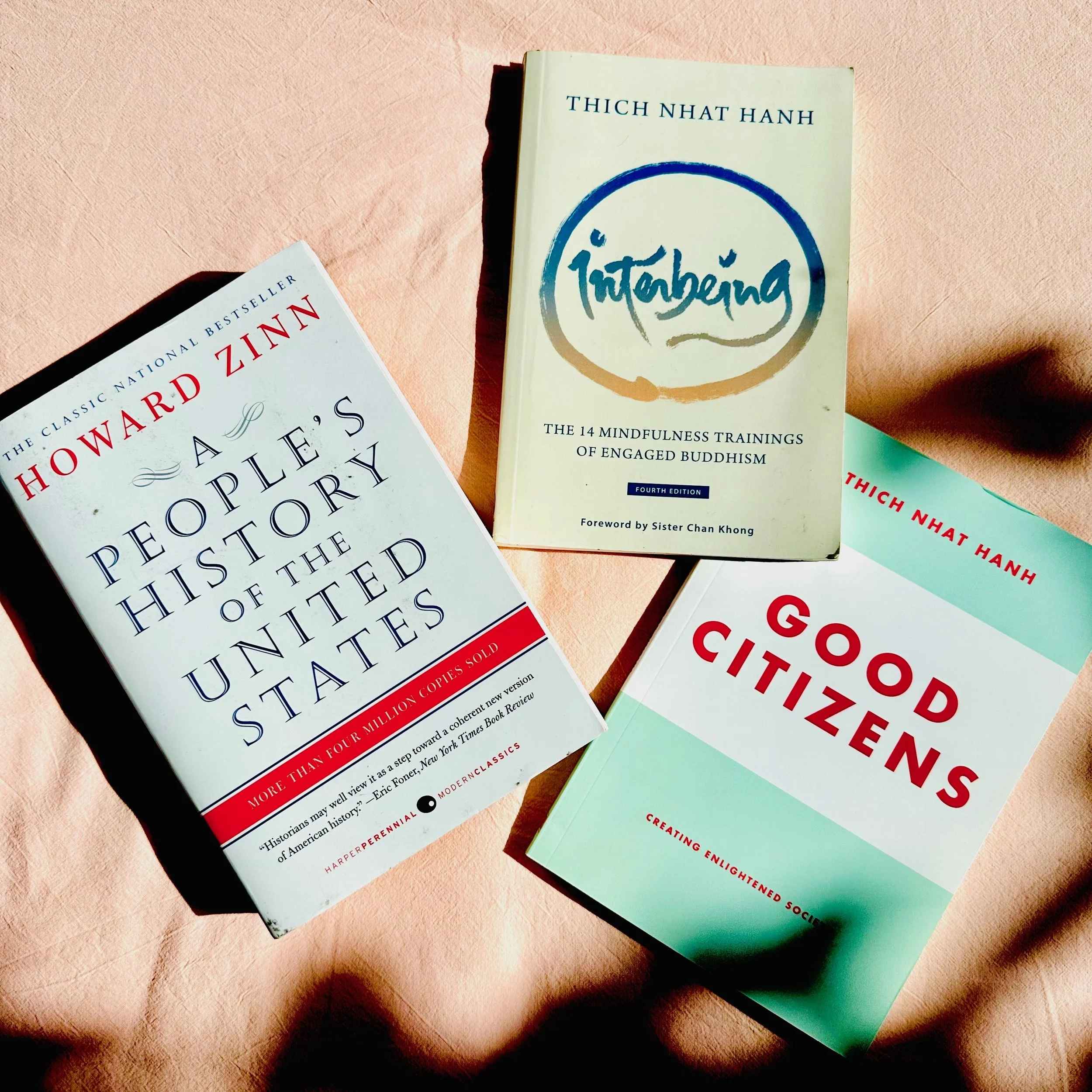 Good Citizens (from the Parallax Press website) “In Good Citizens, Thich Nhat Hanh lays out the foundation for an international solidarity movement based on a shared sense of compassion, mindful consumption, and right action. Following these principles, he believes, is the path to world peace. The book is based on our increased global interconnectedness and subsequent need for harmonious communication and a shared ethic to make our increasingly globalized world a more peaceful place. The book will be appreciated by people of all faiths and cultural backgrounds.” https://www.parallax.org/product/good-citizens/#product-content